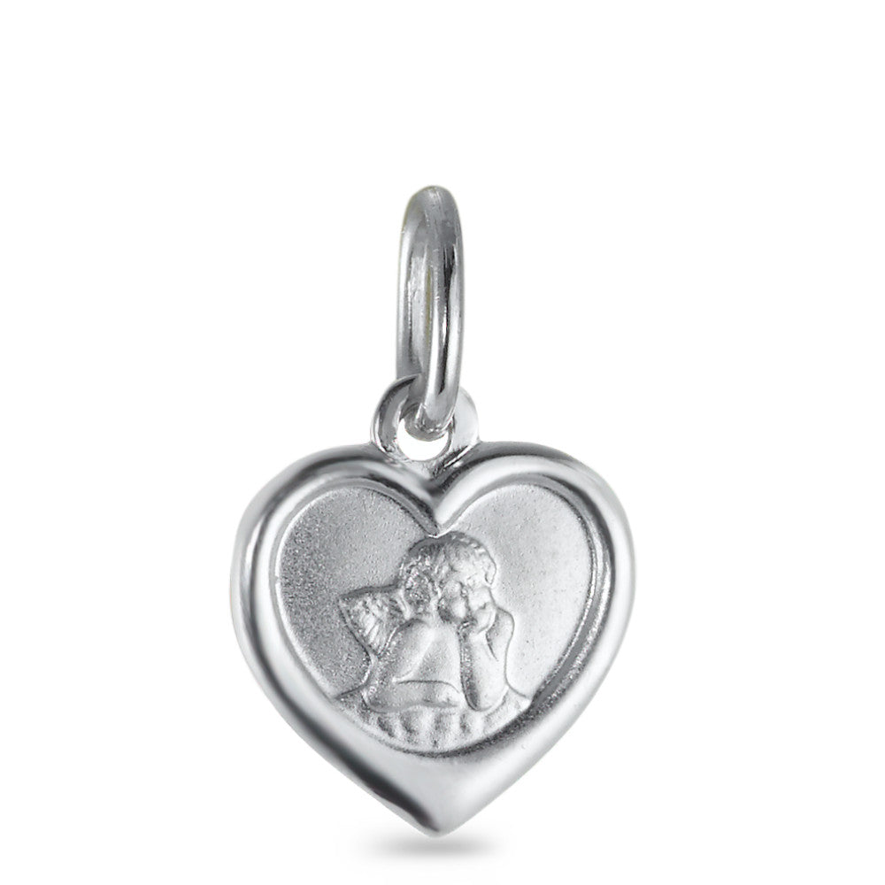Dieser zarte Baby-Anhänger aus 750er Weissgold zeigt einen liebevoll gestalteten Schutzengel im Herzen. Ein bedeutungsvolles Schmuckstück zum Schutz und als schönes Geschenk zur Taufe oder Geburt, das Wärme und Geborgenheit symbolisiert.