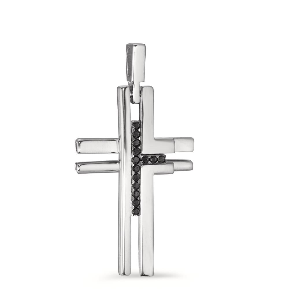 Anhänger 750/18 K Weissgold Zirkonia schwarz, 14 Steine Kreuz