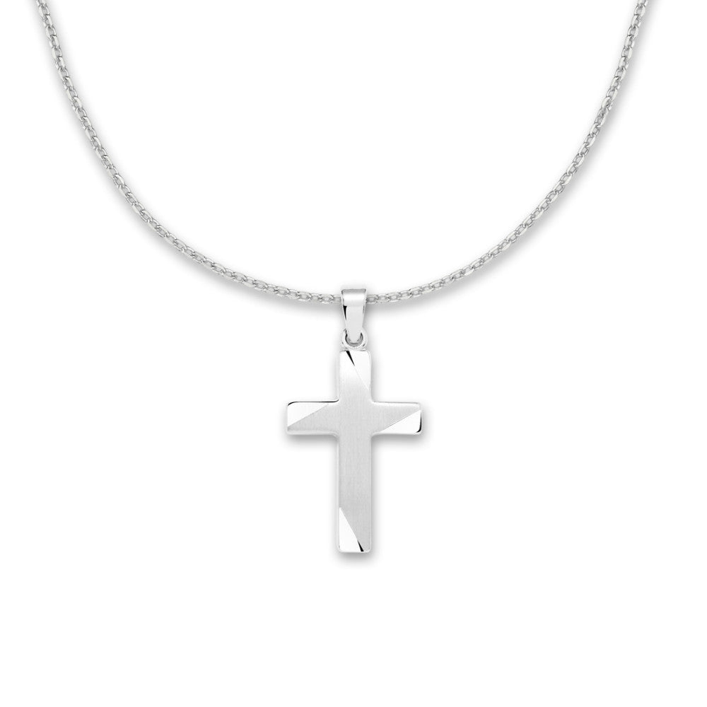 Eleganter Herren-Anhänger aus hochwertigem Silber in Kreuzform. Die Kombination aus mattierter Oberfläche und polierten Akzenten verleiht diesem Schmuckstück zeitlose Eleganz und maskulinen Charme. Perfekt als modisches Accessoire oder persönliches Geschenk.