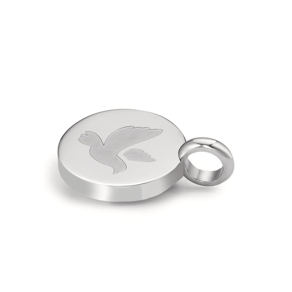 Moderner Anhänger aus hochwertigem Edelstahl mit eingravierter Taube als Symbol für Frieden und Freiheit. Zeitloses, rundes Design, perfekt für jeden Anlass. Robust, langlebig und hypoallergen – ideal als stilvolles Geschenk oder für den eigenen Schmuck.