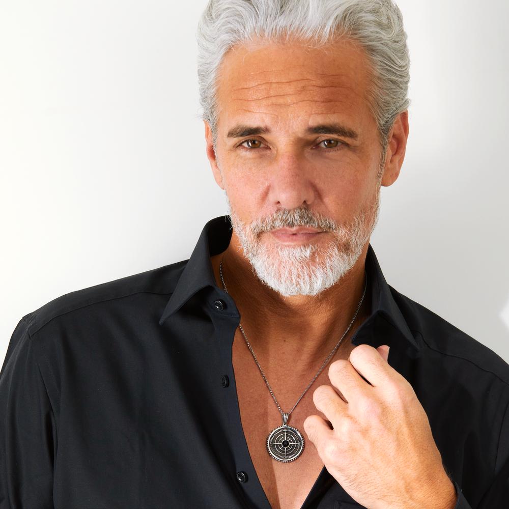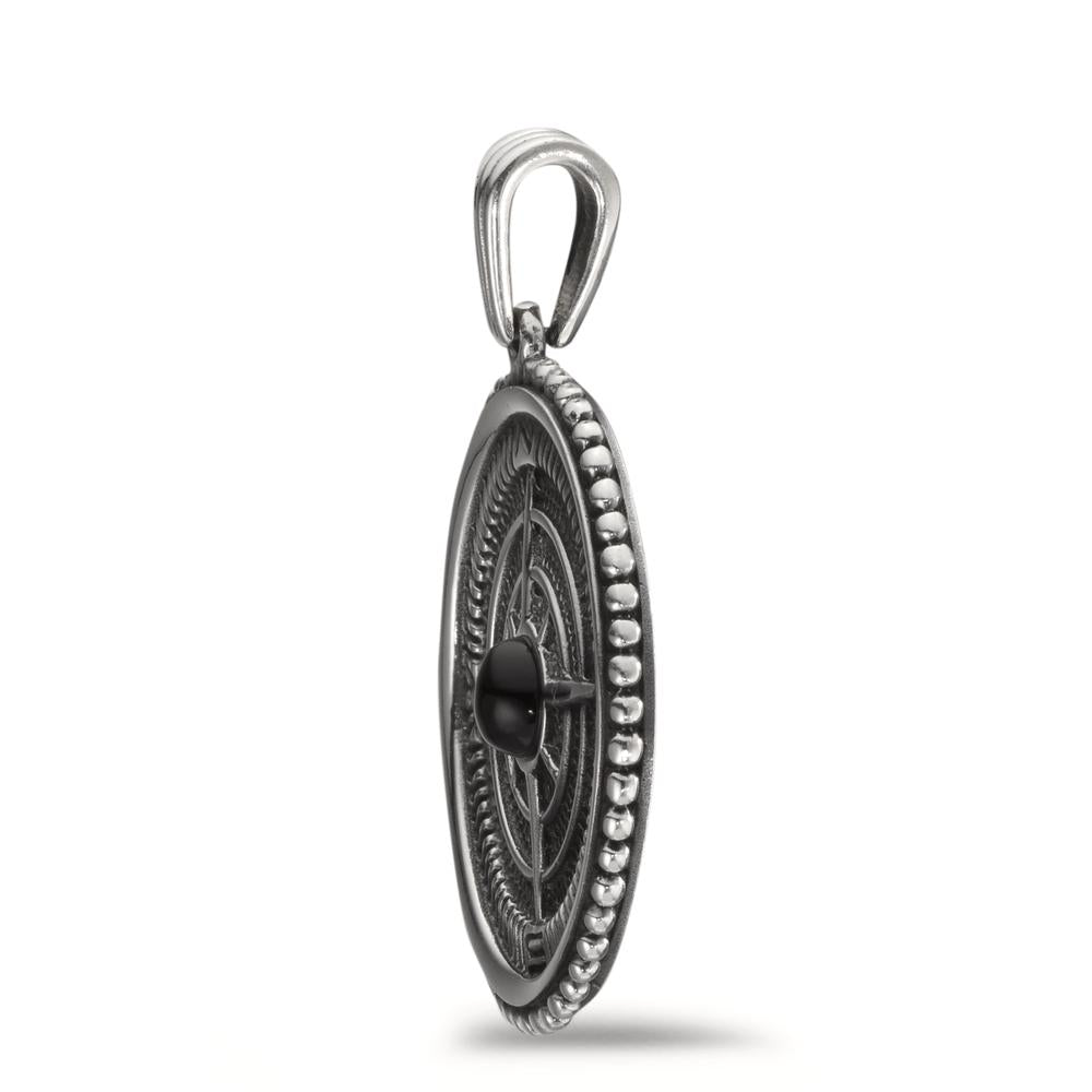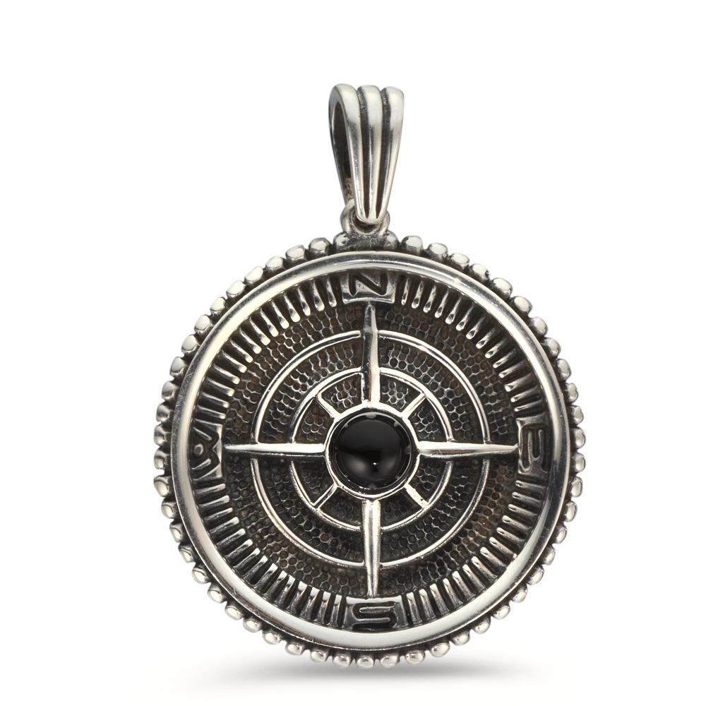Moderner Herren-Anhänger aus hochwertigem Silber mit zentralem Onyxstein. Das markante Kompass-Design verleiht diesem Schmuckstück eine kraftvolle Ausstrahlung und ist ideal für stilbewusste Männer. Ein robustes Accessoire, das jedem Outfit Charakter verleiht.