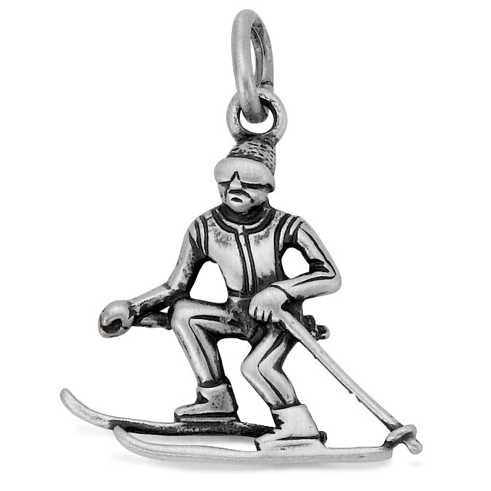 Moderner Herren Anhänger aus hochwertigem Silber, gestaltet als dynamischer Skifahrer. Perfekt für Wintersportfans und Liebhaber exklusiver Schmuckstücke. Detailreich gearbeitet, ideal als Geschenk oder persönliches Accessoire für stilbewusste Männer.
