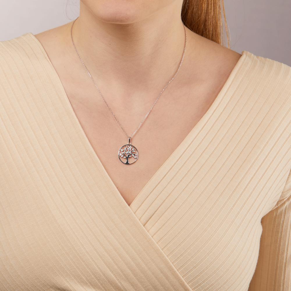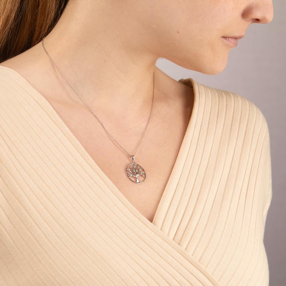 Eleganter Damen Anhänger aus hochwertigem Silber, verziert mit funkelnden Zirkonia-Steinen. Das zarte Design zeigt den symbolträchtigen Lebensbaum, der für Wachstum und Harmonie steht. Perfektes Accessoire für jeden Anlass, das Stil und Bedeutung vereint.