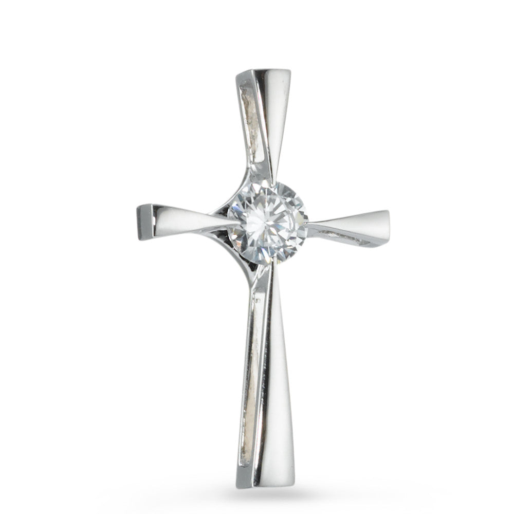 Anhänger Silber Zirkonia rund, 4 mm rhodiniert Kreuz