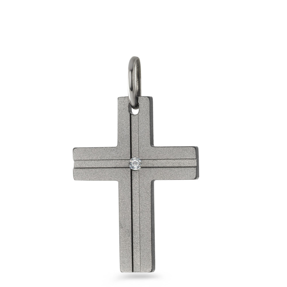 Moderner Herren-Anhänger aus robustem Titan, veredelt mit 750er Weissgold für edle Akzente. In der Kreuzmitte funkelt ein hochwertiger Diamant, der dem Schmuckstück eine zeitlose Eleganz verleiht. Perfekt für stilbewusste Männer, die Wert auf Qualität und Design legen.