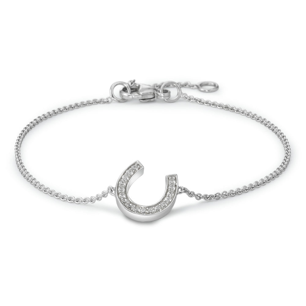 Elegantes Damenarmband aus 375er Weissgold mit funkelnden Zirkonia-Steinen. Das filigrane Design mit Hufeisen-Motiv verleiht jedem Outfit eine besondere Note. Perfekt als stilvolles Accessoire oder als Geschenk für besondere Momente. Hochwertige Verarbeitung und angenehmer Tragekomfort.