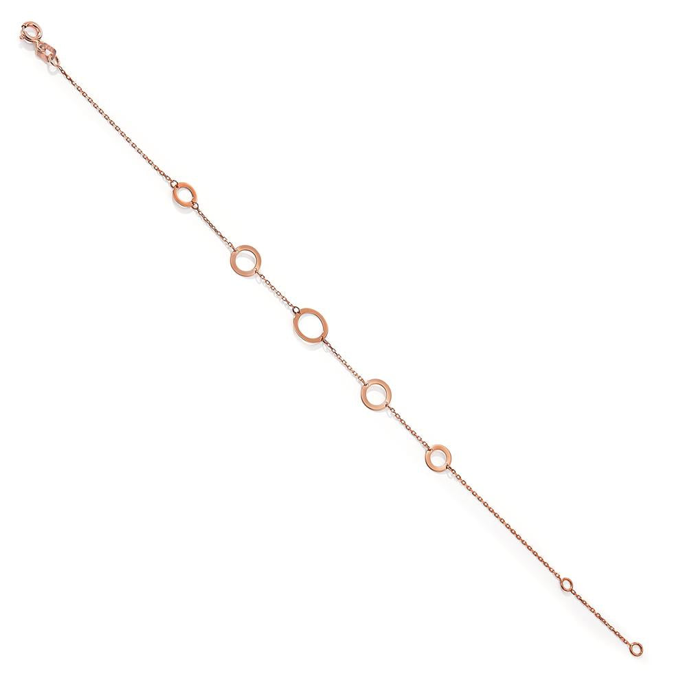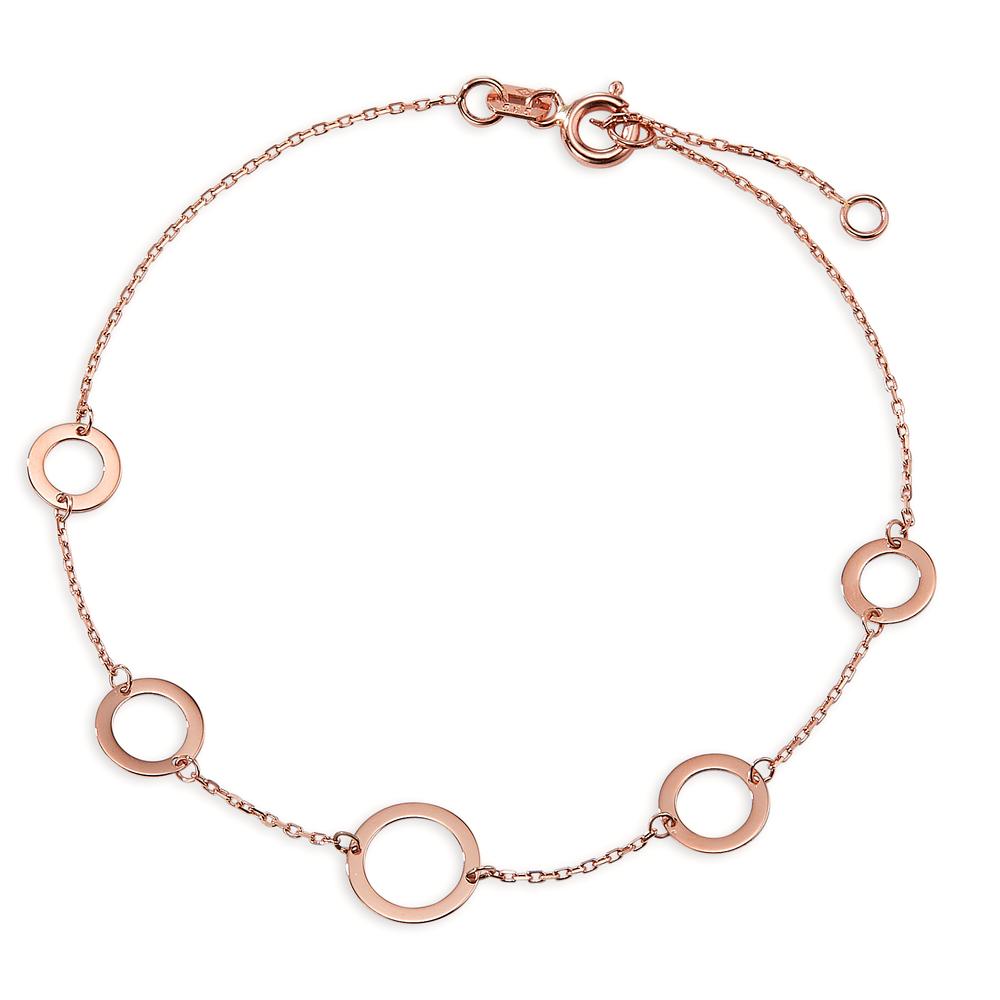 Elegantes Damenarmband aus hochwertigem 585 Rotgold. Feine Kettenglieder verbinden sorgfältig gearbeitete, stilvolle offene Ringe zu einem zeitlosen Schmuckstück. Perfekt für jeden Anlass – ein zarter, glänzender Begleiter für Ihren Alltag oder besondere Momente.