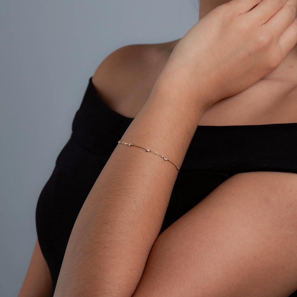 Armband 750/18 K Gelbgold Zirkonia 8 Steine 16-18 cm verstellbar Ø3 mm