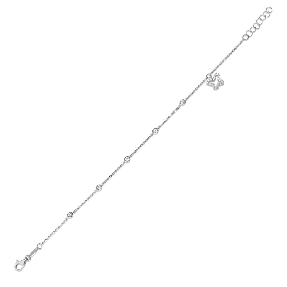 Elegantes Damenarmband aus 750er Weissgold, verziert mit funkelnden Zirkonia-Steinen. Ein zarter Schmetterlingsanhänger setzt verspielte Akzente und macht dieses Schmuckstück zum perfekten Begleiter für jeden Anlass. Verstellbare Länge für optimalen Tragekomfort.