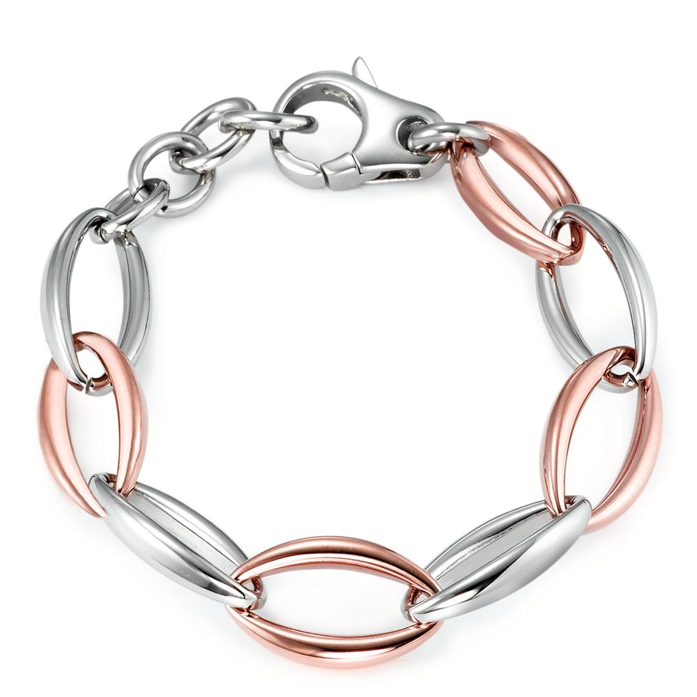 Elegantes Damenarmband aus hochwertigem Edelstahl in zweifarbigem Design. Die abgerundeten Glieder in Silber und Roségold verleihen dem Schmuckstück modernen Chic und zeitlose Schönheit. Perfektes Accessoire für jeden Anlass, langlebig und hautfreundlich.