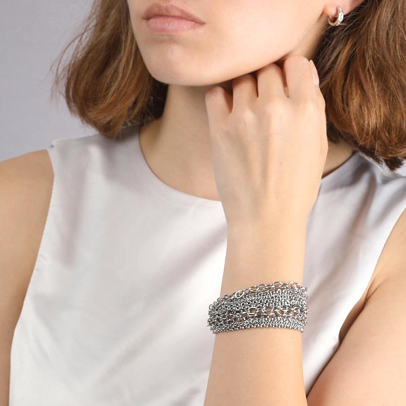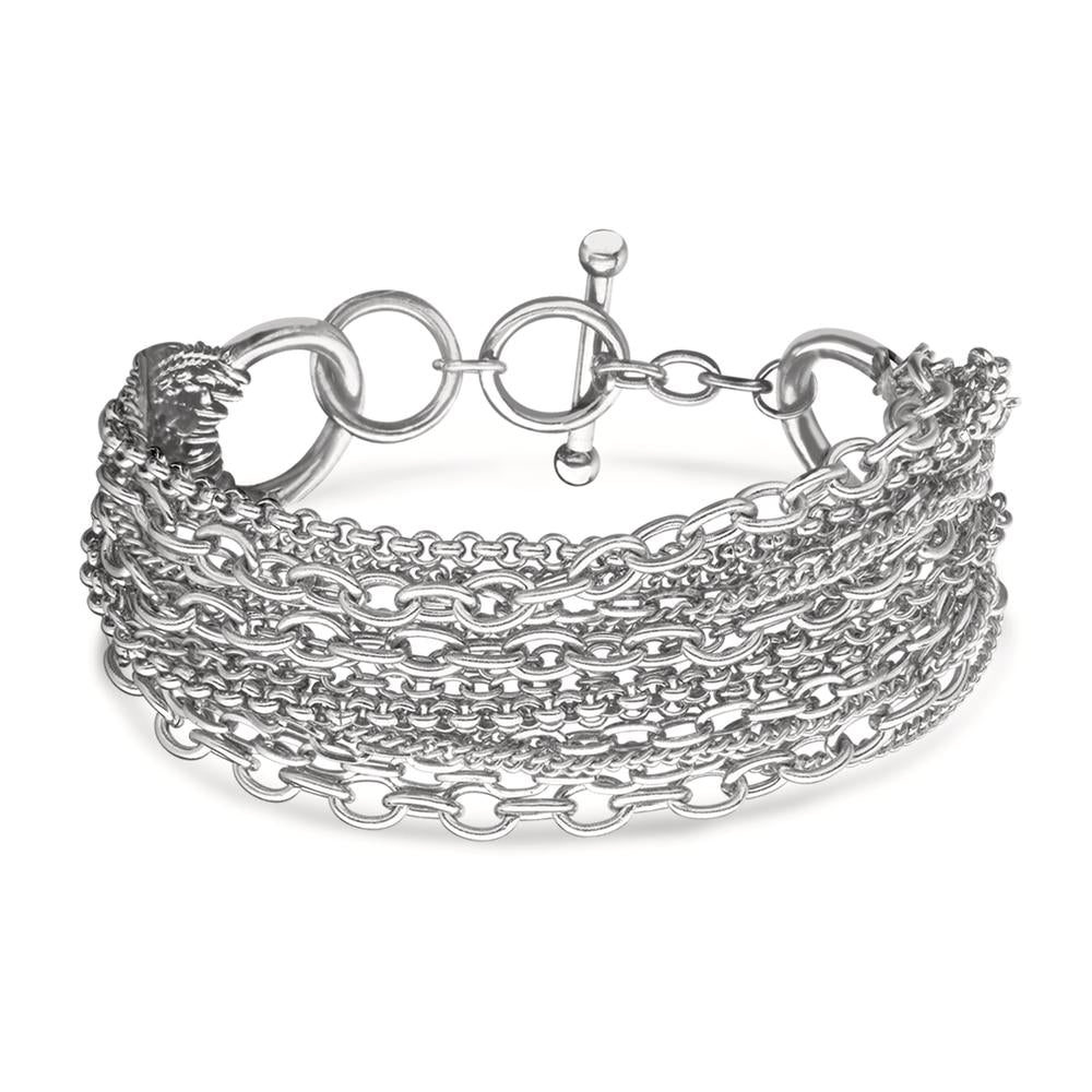 Elegantes Damen-Armband aus hochwertigem Edelstahl. Vielschichtiges Design mit mehreren feinen Ketten für einen modernen Look. Das robuste Material sorgt für Langlebigkeit und Hautverträglichkeit. Perfektes Accessoire für jeden Anlass und ein zeitloses Schmuckstück in Silberoptik.