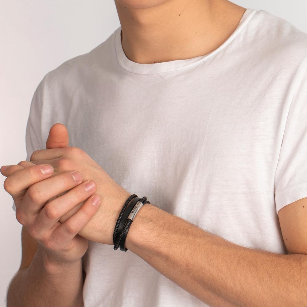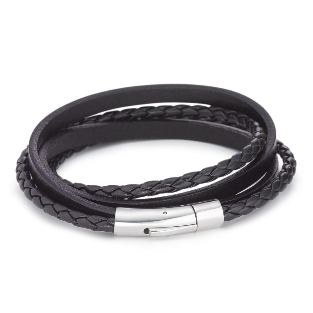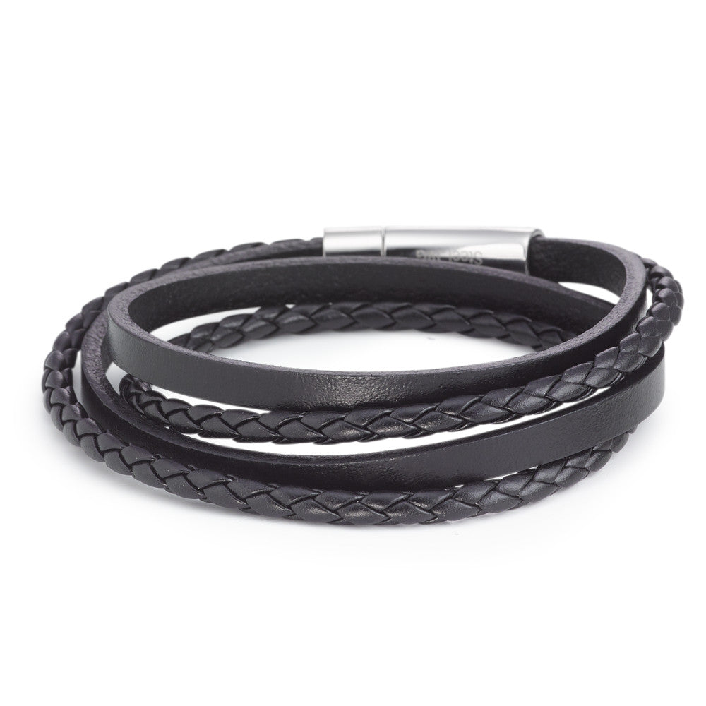 Dieses Herren Armband vereint Stil und Robustheit. Aus hochwertigem, schwarzem Leder gefertigt, besticht es durch geflochtene und glatte Elemente. Der magnetische Edelstahlverschluss sorgt für sicheren Halt und perfekten Tragekomfort – ein idealer Begleiter für jeden Tag.