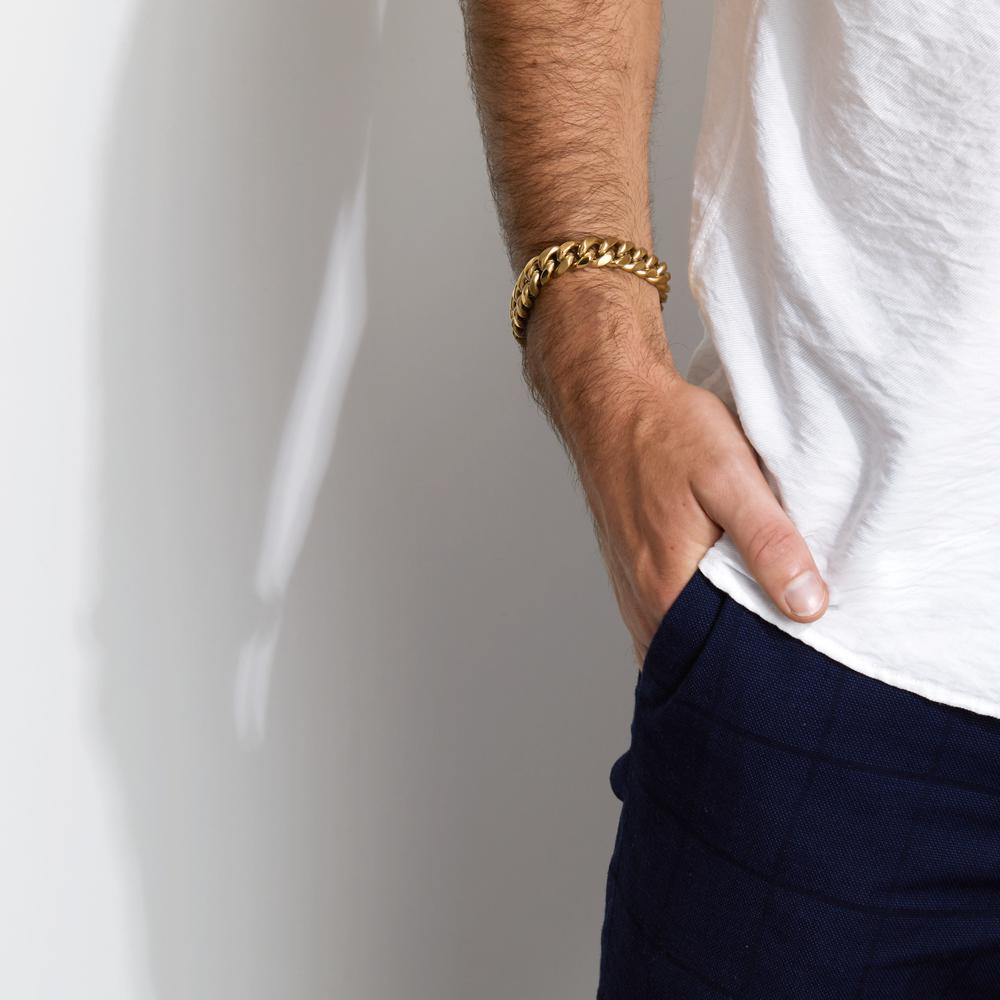 Stilvolles Herrenarmband aus hochwertigem Edelstahl mit goldfarbenem Finish. Robust und elegant zugleich, setzt dieses Armband ein modisches Statement für jeden Anlass. Perfekt für den modernen Mann, der Wert auf Qualität und Design legt. Ein zeitloses Accessoire für Ihren Look.