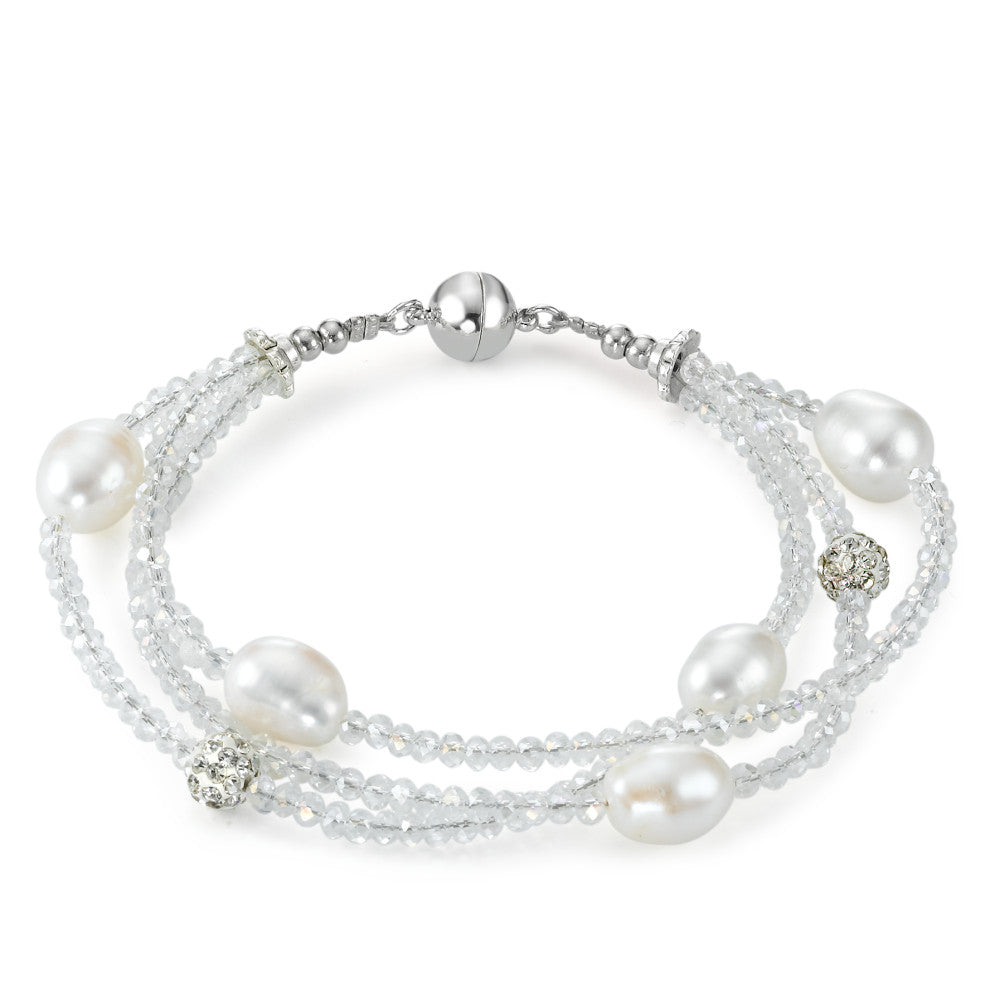 Armband Edelstahl Kristall Süsswasserzuchtperle, 5 Perlen, 9 mm 18 cm
