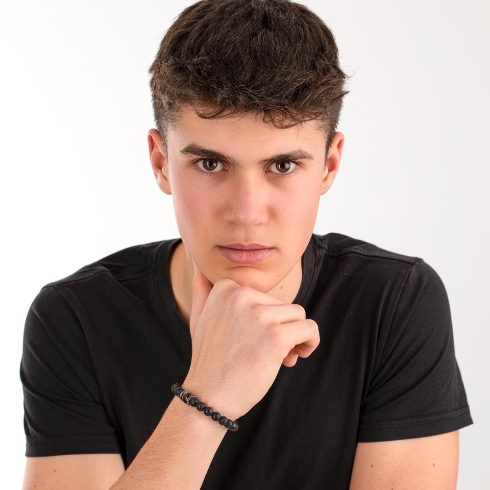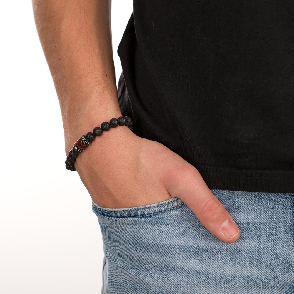 Dieses Herrenarmband kombiniert natürliche Lava-Steine mit stilvollen Edelstahl-Elementen. Die schwarzen Lavaperlen verleihen dem Armband einen robusten, maskulinen Look, während die feinen Edelstahldetails für Eleganz sorgen. Perfekt für den modernen Mann.
