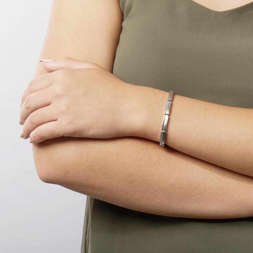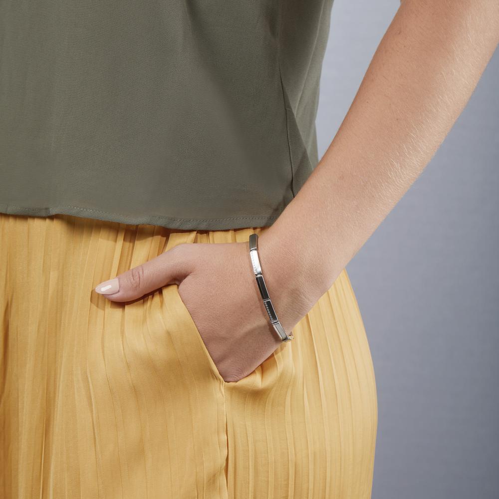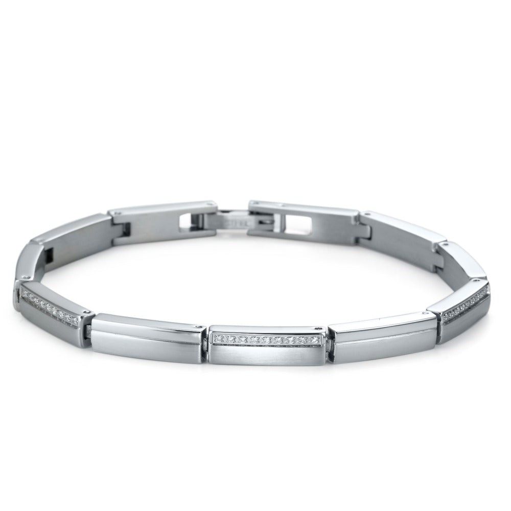 Elegantes Damenarmband aus hochwertigem Edelstahl. Stilvolle rechteckige Glieder sind mit funkelnden Zirkonia-Steinen besetzt, die dem Schmuckstück einen edlen Glanz verleihen. Perfekt für jeden Anlass – modern, zeitlos und robust im Design.