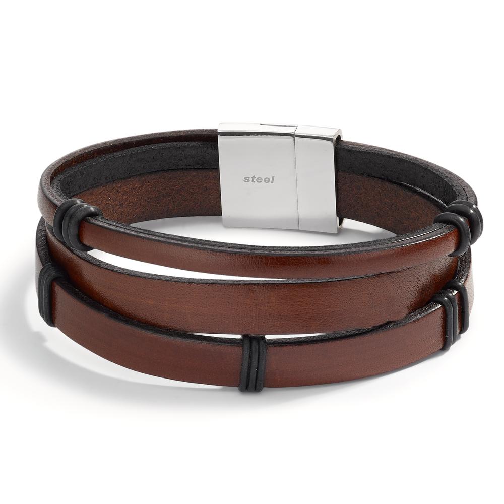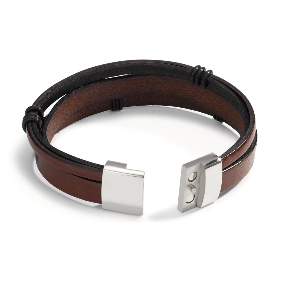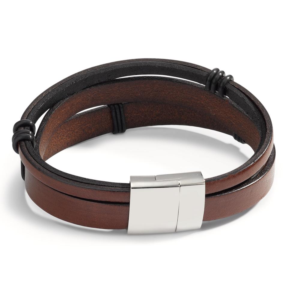 Stylisches Herrenarmband aus hochwertigem braunem Leder mit Edelstahlverschluss. Das doppelte Lederband und die schwarzen Akzente verleihen dem Armband einen modernen und maskulinen Look. Perfekt für den Alltag oder besondere Anlässe – robust, bequem und zeitlos elegant.
