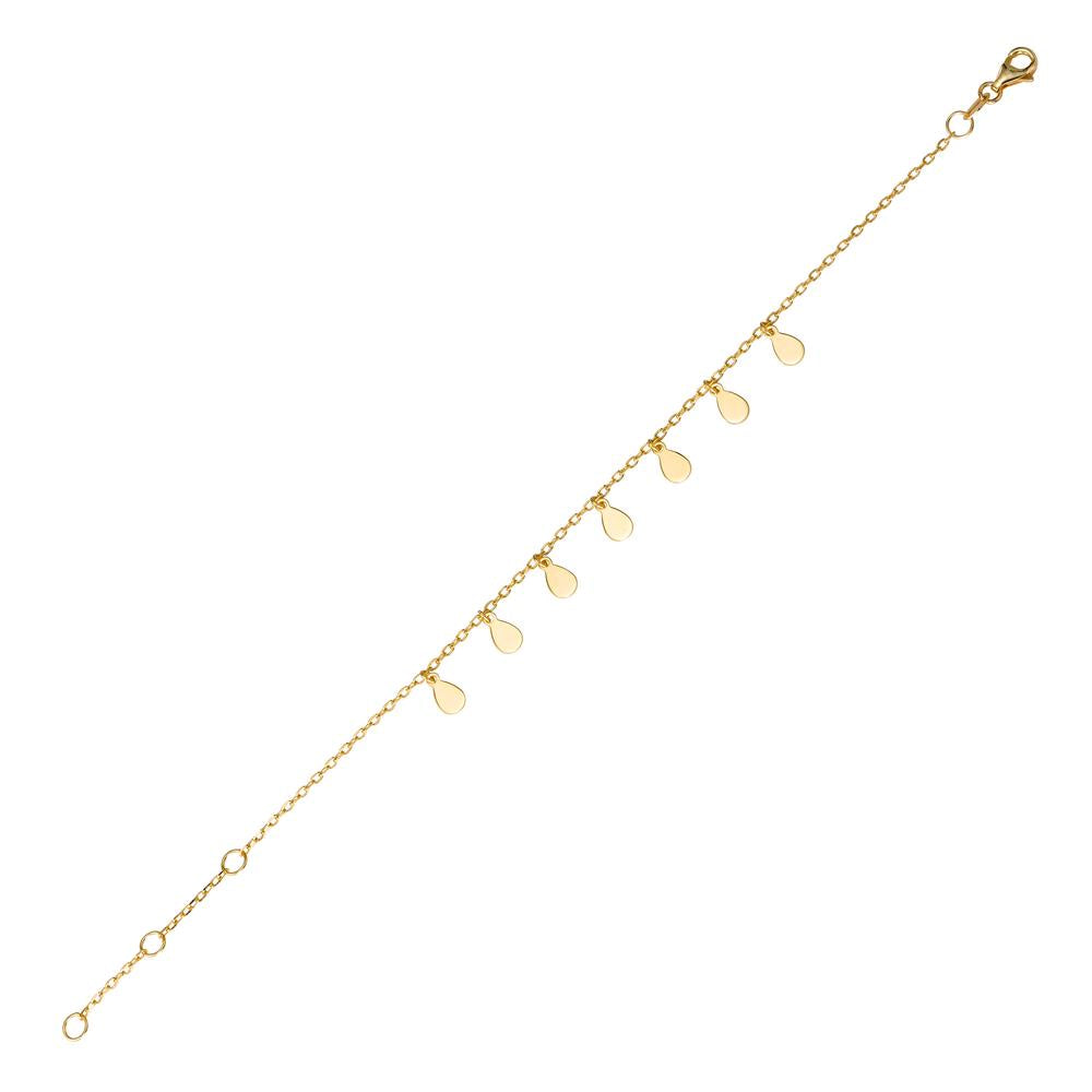 Elegantes Damen Armband aus hochwertigem Silber mit goldfarbener Beschichtung. Die feine Kette ist mit sieben glänzenden Tropfen-Anhängern verziert, die für einen stilvollen und femininen Look sorgen. Ideal als tägliches Accessoire oder besonderes Geschenk.