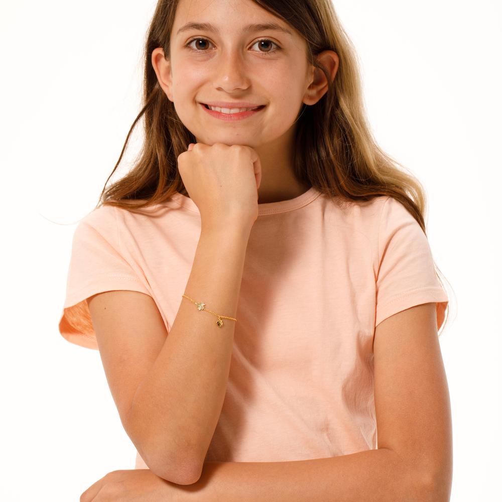 Armband Silber gelb vergoldet Kleeblatt 16-19 cm verstellbar