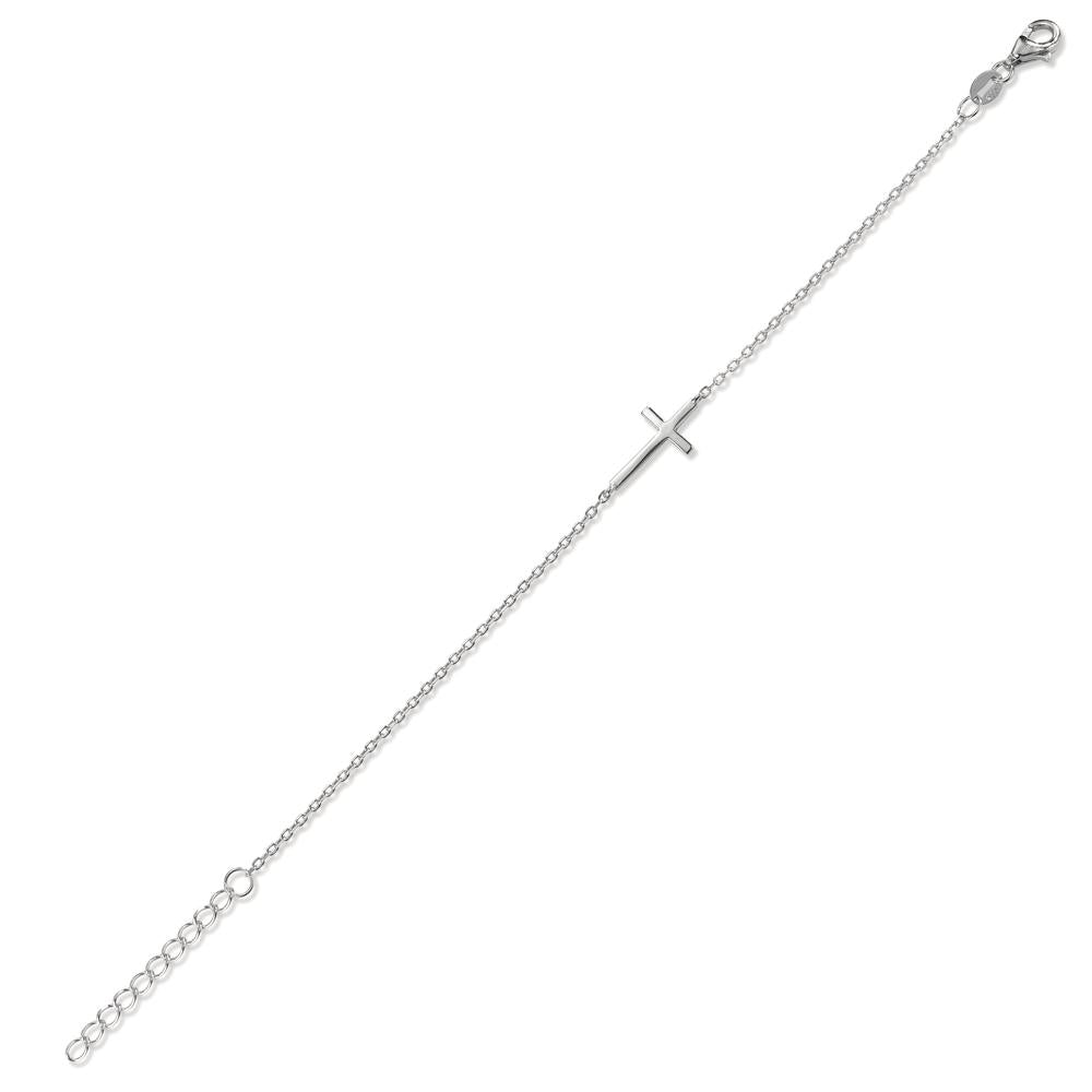 Elegantes Damenarmband aus hochwertigem Silber mit stilvollem Quer-Kreuz als zierlichem Anhänger. Die feine Kettengliederung sorgt für einen filigranen Look, der zu jedem Outfit passt. Verstellbare Länge für perfekten Sitz und täglichen Tragekomfort. Ein zeitloses Schmuckstück.