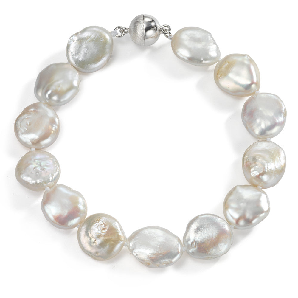 Armband Silber rhodiniert Süsswasserzuchtperlen cremeweiss, 13 mm 20.5 cm