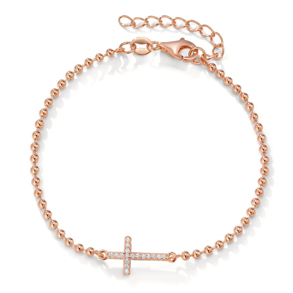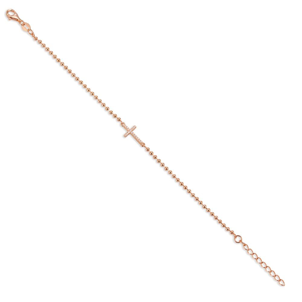 Elegantes Damenarmband aus hochwertigem Silber mit Roségold-Beschichtung. Das zarte Kugelarmband wird durch ein seitlich angeordnetes Kreuz mit funkelnden Zirkonia-Steinen veredelt. Ein stilvolles Accessoire für jeden Anlass. Länge verstellbar für optimalen Tragekomfort.