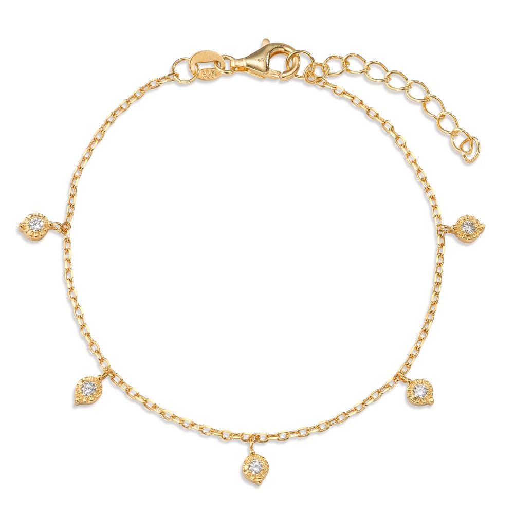 Armband Silber Zirkonia 5 Steine gelb vergoldet 15.5-18.5 cm verstellbar