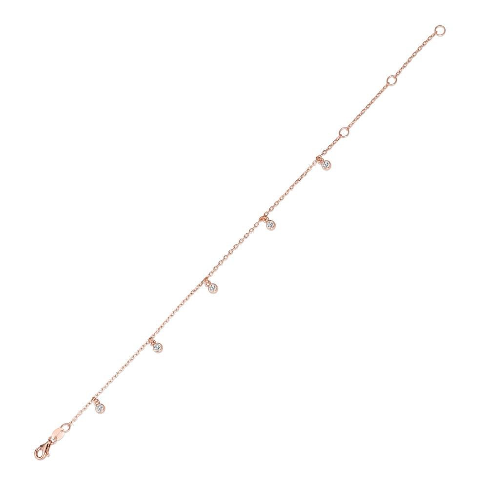 Elegantes Damenarmband aus hochwertigem Silber mit zarten Zirkonia-Anhängern. Das filigrane Design in Rosegold verleiht jedem Outfit einen dezenten, funkelnden Akzent. Ideal als Geschenk oder für den täglichen stilvollen Look. Verstellbare Länge für perfekten Sitz.