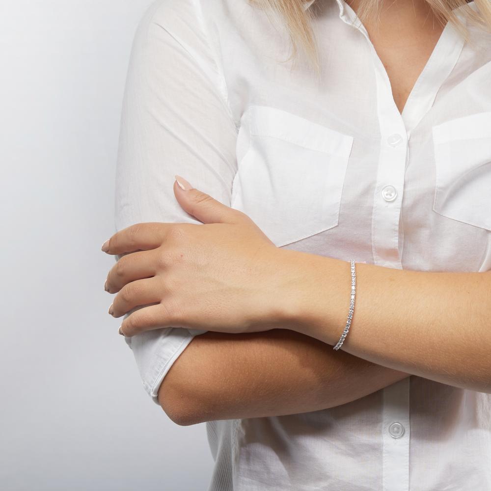 Elegantes Damenarmband aus hochwertigem Silber, besetzt mit funkelnden Zirkonia-Steinen. Dieses zarte Schmuckstück verleiht jedem Outfit einen edlen Glanz und ist perfekt für besondere Anlässe oder den Alltag. Ein zeitloses Accessoire für stilbewusste Frauen.