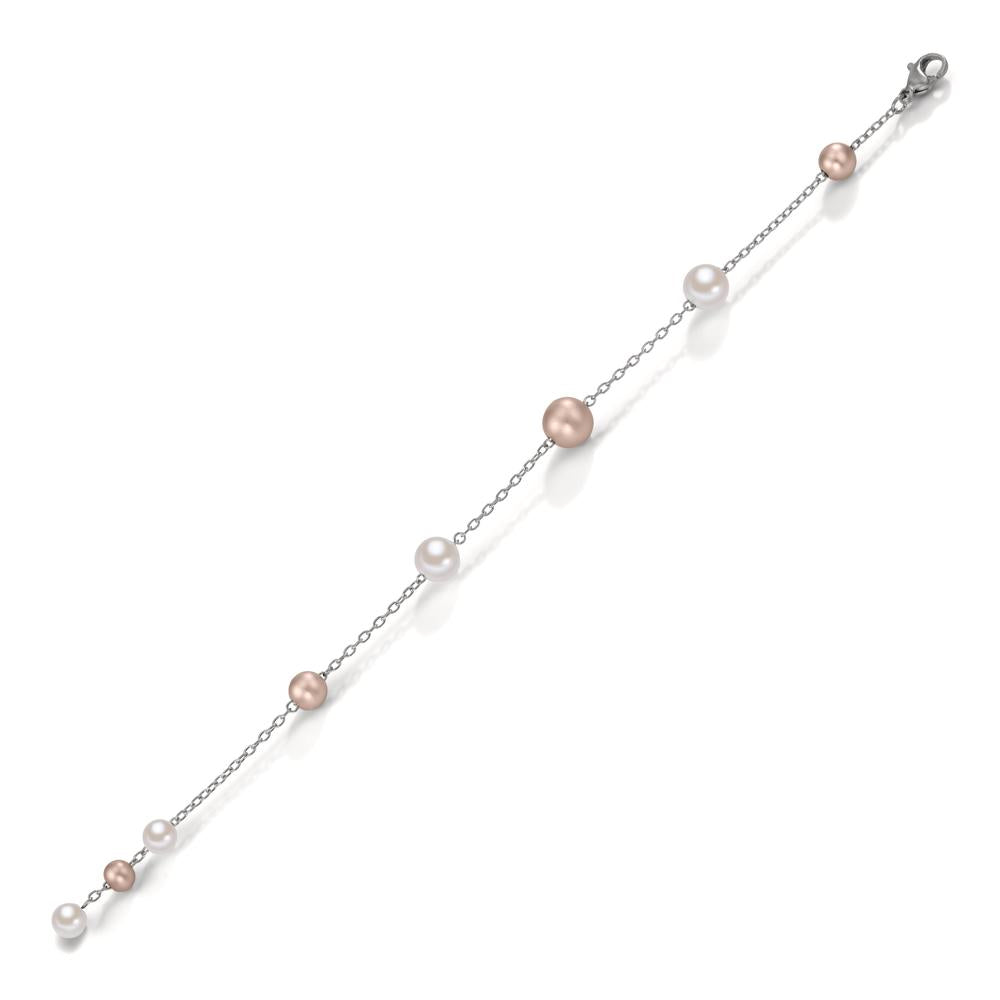 Armkette Arya Edelstahl mit Light Rosé Aluminium Pearls und Muschelperlen, 17-18.5 cm verstellbar