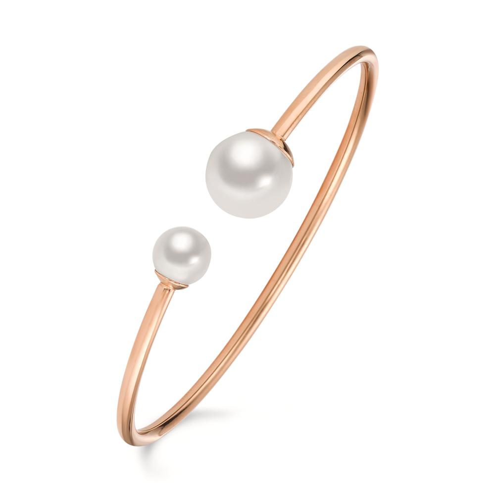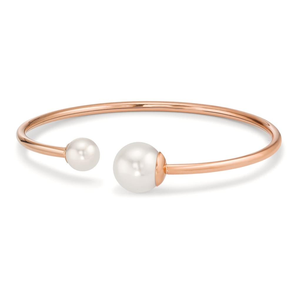 Armreif Edelstahl rosé IP beschichtet shining Pearls cremeweiss, 2 Perlen Ø60 mm