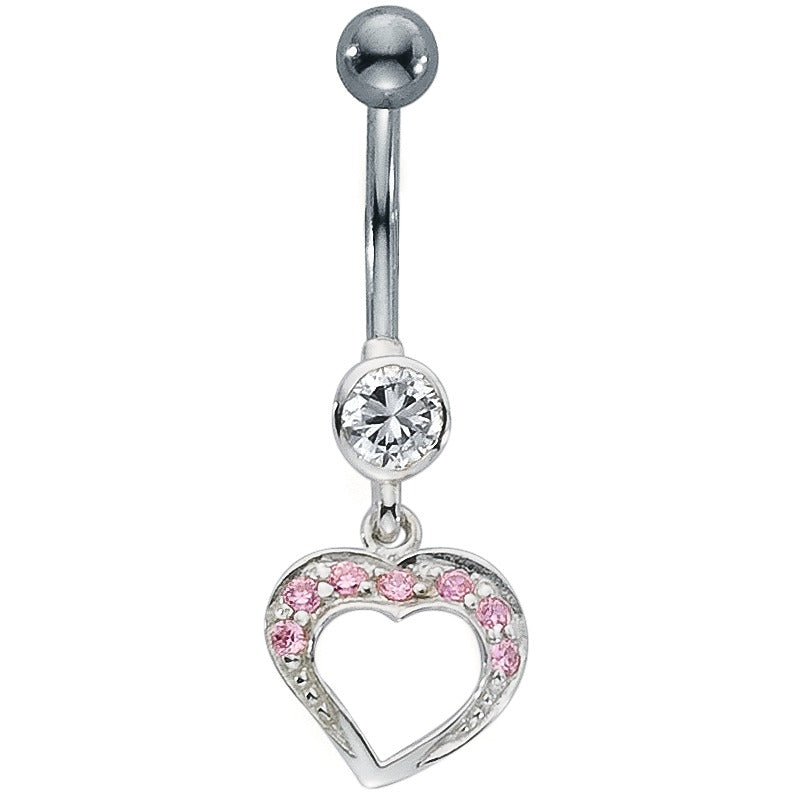 Bauchpiercing Edelstahl, Silber Zirkonia rosa, 8 Steine Herz