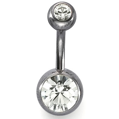 Bauchpiercing Titan Kristall weiss, 2 Steine