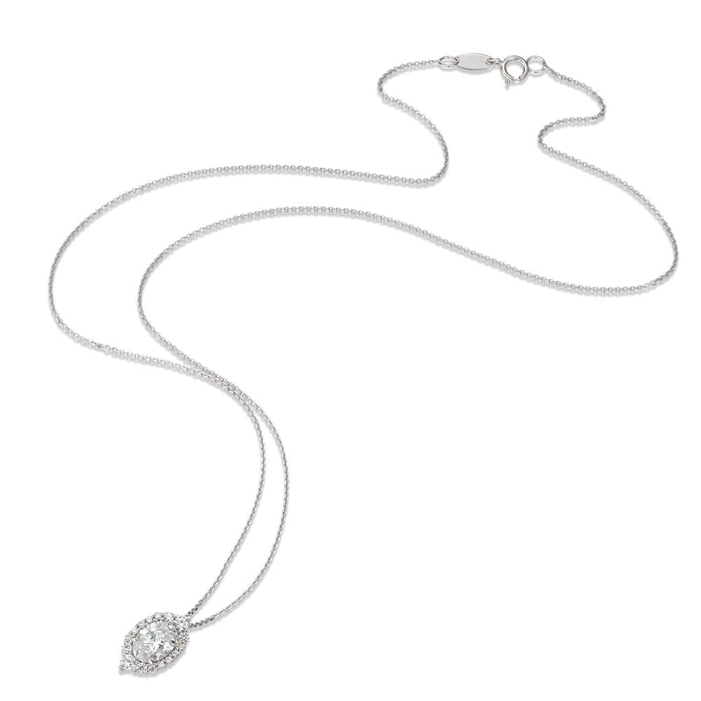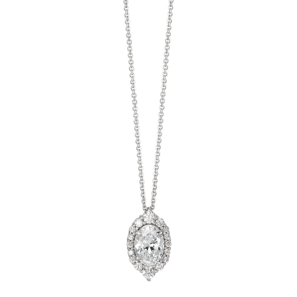 Elegantes Damen-Collier aus hochwertigem 750er Weissgold, verziert mit funkelnden Zirkonia-Steinen. Das filigrane Design mit ovalem Anhänger setzt edle Akzente und passt perfekt zu jedem Anlass. Ein zeitloser Schmuckklassiker für besondere Momente.