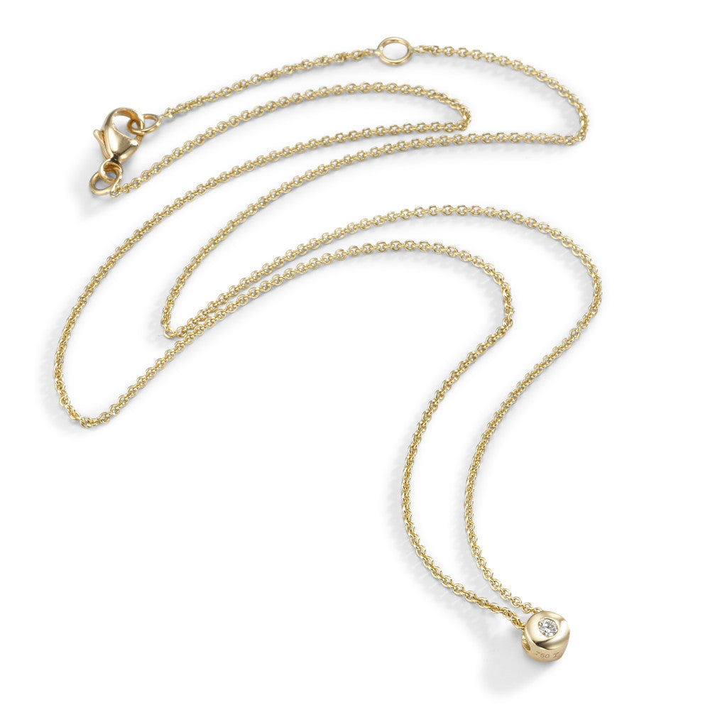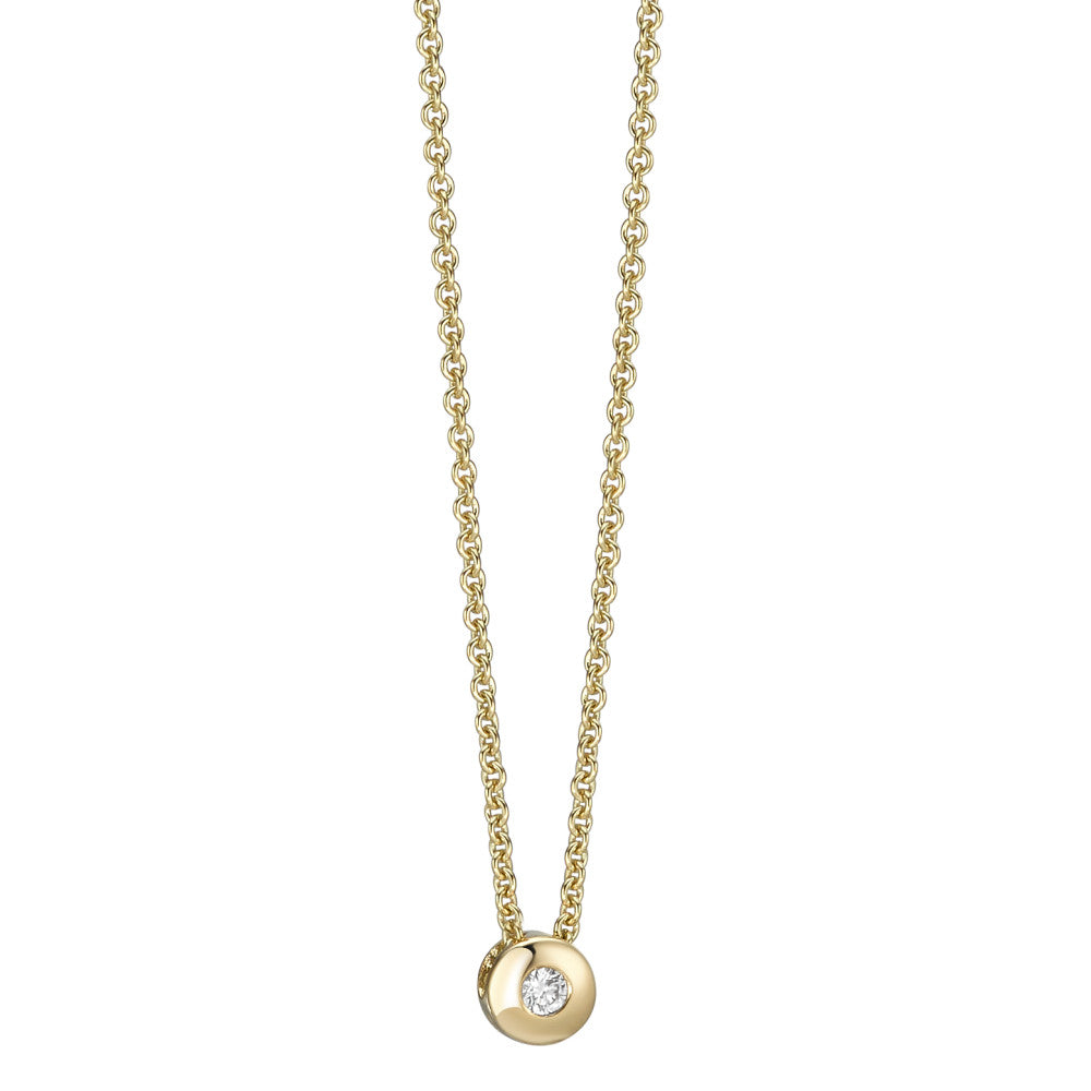 Zeitlose Damen Halskette aus edlem 750er Gelbgold mit einem funkelnden Diamant als Anhänger. Das schlichte, elegante Design macht dieses Schmuckstück zum perfekten Begleiter für jeden Tag und besondere Anlässe. Ein Geschenk voller Glanz und Stil.