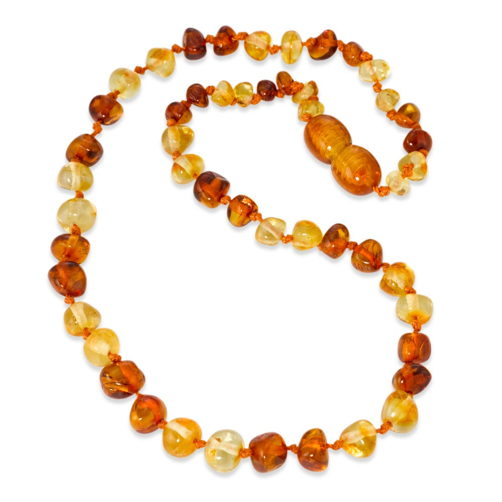 Dieses Baby-Collier aus natürlichen Bernsteinperlen ist sanft zur empfindlichen Babyhaut. Die verschiedenfarbigen Bernsteine sind sorgfältig poliert und auf einem stabilen, farblich passenden Faden aufgereiht. Ein bezauberndes Accessoire für Ihr Baby mit natürlichem Charme.