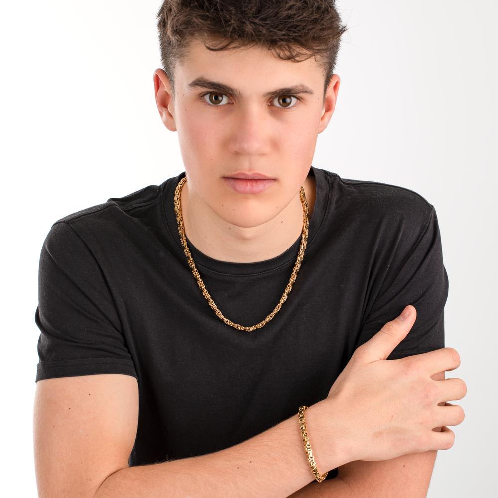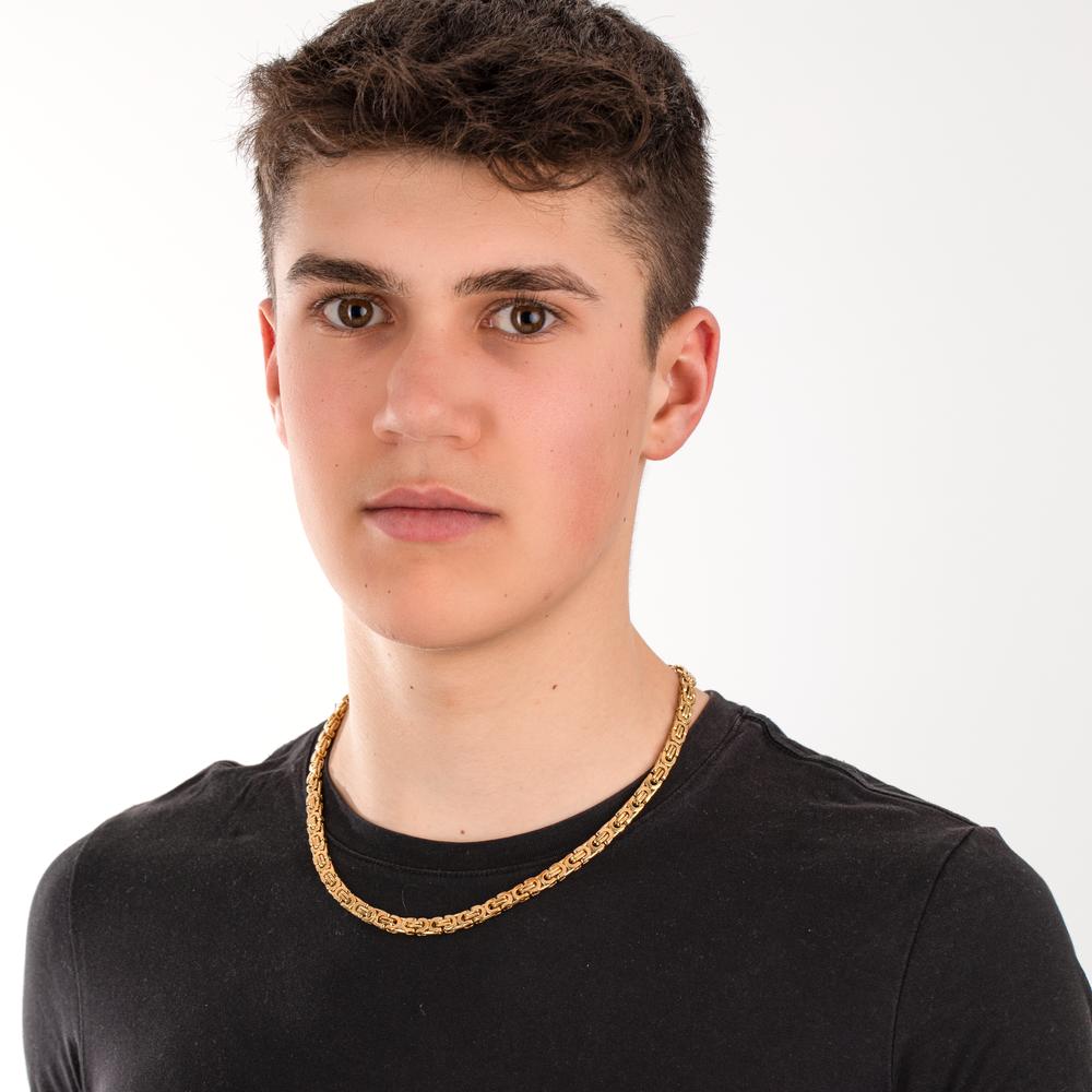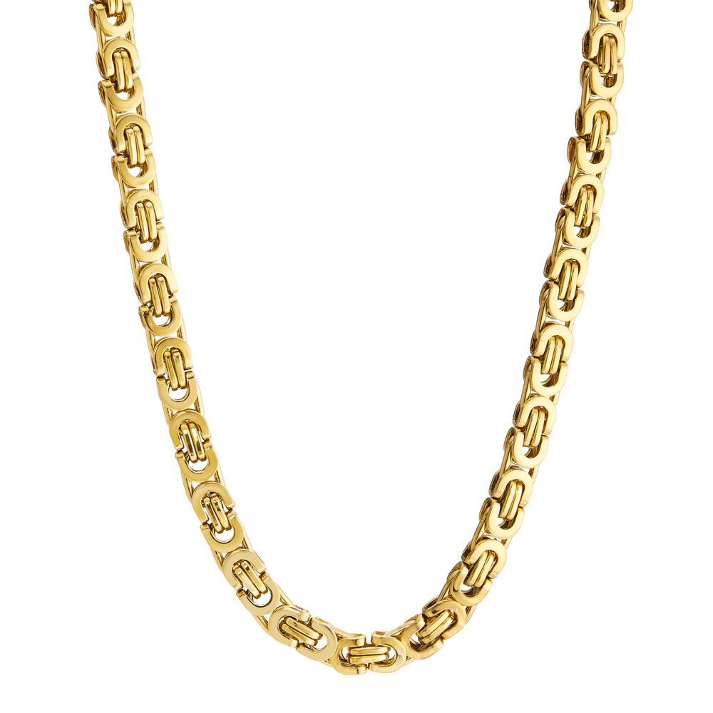 Elegantes Herren-Collier aus hochwertigem Edelstahl in edlem Goldton. Das robuste Design mit markanten Gliedern verleiht jedem Outfit einen stilvollen und modernen Akzent. Perfekt für den Alltag oder besondere Anlässe – zeitlos und langlebig.
