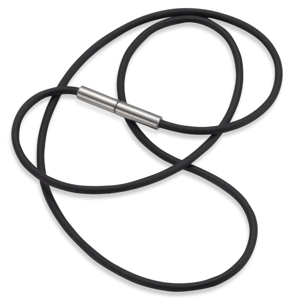 Das Collier aus robustem Kautschuk besticht durch sein schlichtes, modernes Design. Der Verschluss aus hochwertigem Edelstahl sorgt für einen sicheren Halt und setzt einen dezenten, eleganten Akzent. Ideal für den Alltag oder als stylisches Accessoire zu jedem Outfit.
