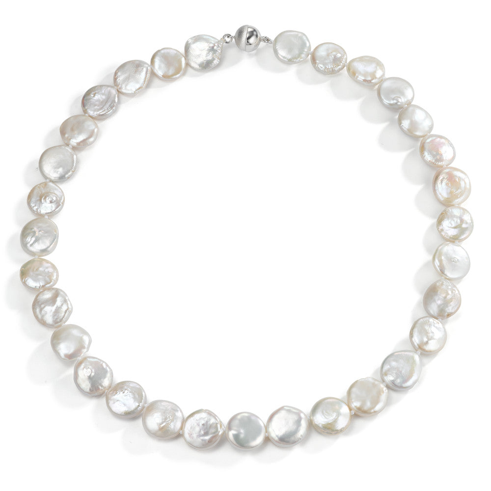 Collier Silber rhodiniert Süsswasserzuchtperlen cremeweiss, 13 mm 45 cm
