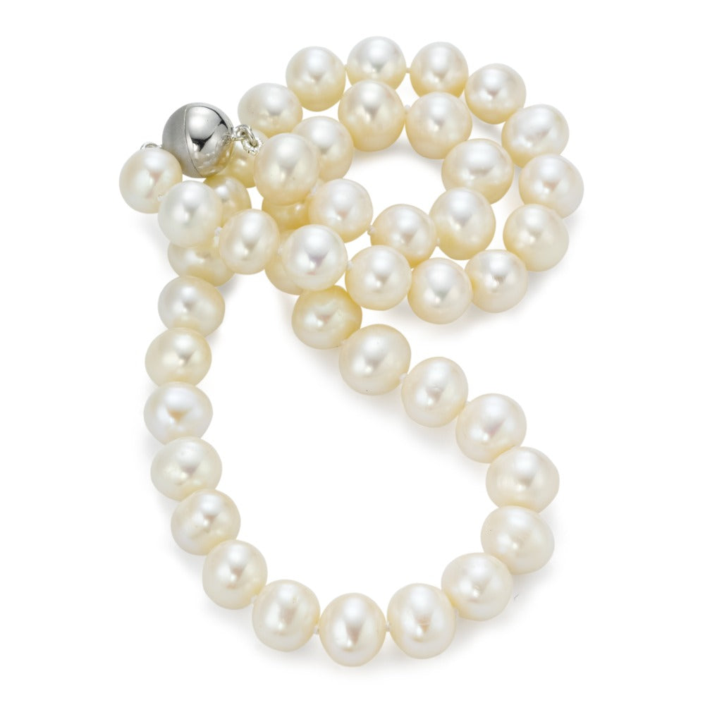 Collier Silber rhodiniert Süsswasserzuchtperlen weiss 9-9.5 mm 50 cm