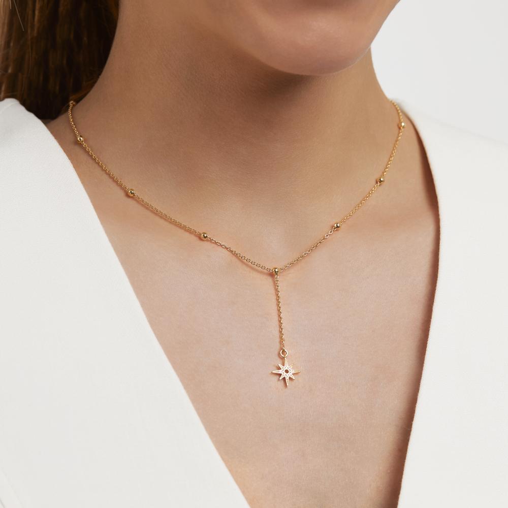 Collier Silber Zirkonia gelb vergoldet Stern 42-47 cm verstellbar