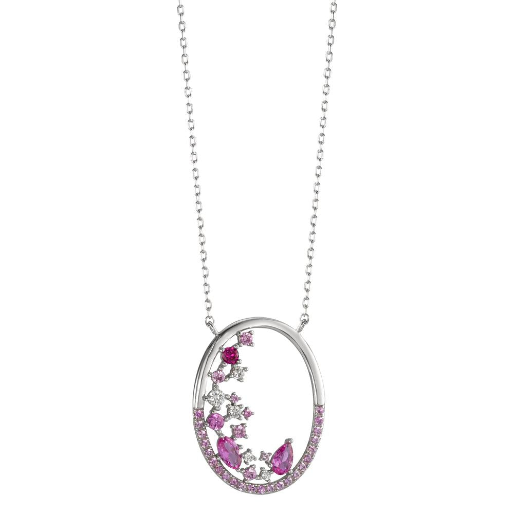 Elegantes Damen-Collier aus feinem Silber, verziert mit funkelnden Zirkonia in Rosa- und Weisstönen. Das ovale Design mit filigranen Steinarrangements macht dieses Schmuckstück zum perfekten Accessoire für stilbewusste Frauen, die dezenten Glamour lieben.