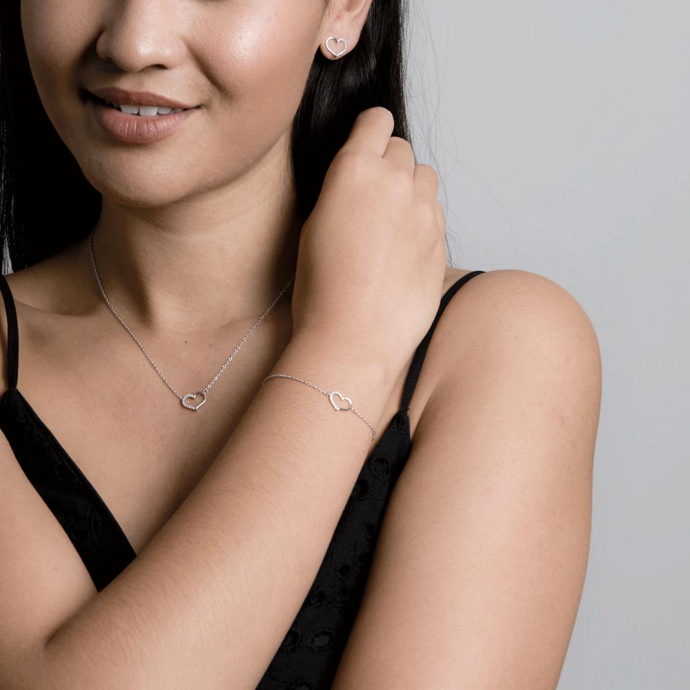 Elegantes Damen-Collier aus hochwertigem Silber mit herzförmigem Anhänger, teils verziert mit funkelnden Zirkonia-Steinen. Ein zeitloses Schmuckstück, das jeder Dame Stil und Charme verleiht – ideal für besondere Anlässe oder den Alltag.