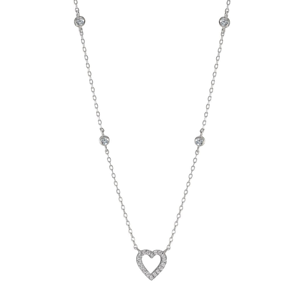 Collier Silber Zirkonia rhodiniert Herz 40-45 cm verstellbar