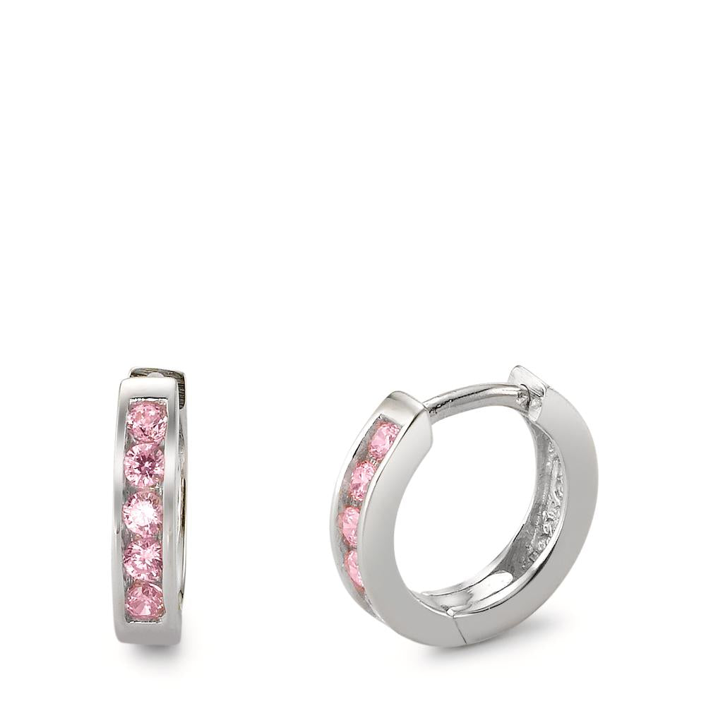 Elegante Damen Klappcreolen aus hochwertigem Silber, besetzt mit funkelnden rosa Zirkonia-Steinen. Die schmalen Creolen sind zeitlos, leicht zu tragen und passen perfekt zu jedem Anlass. Ein stilvolles Accessoire, das Ihren Look dezent veredelt und für Aufsehen sorgt.