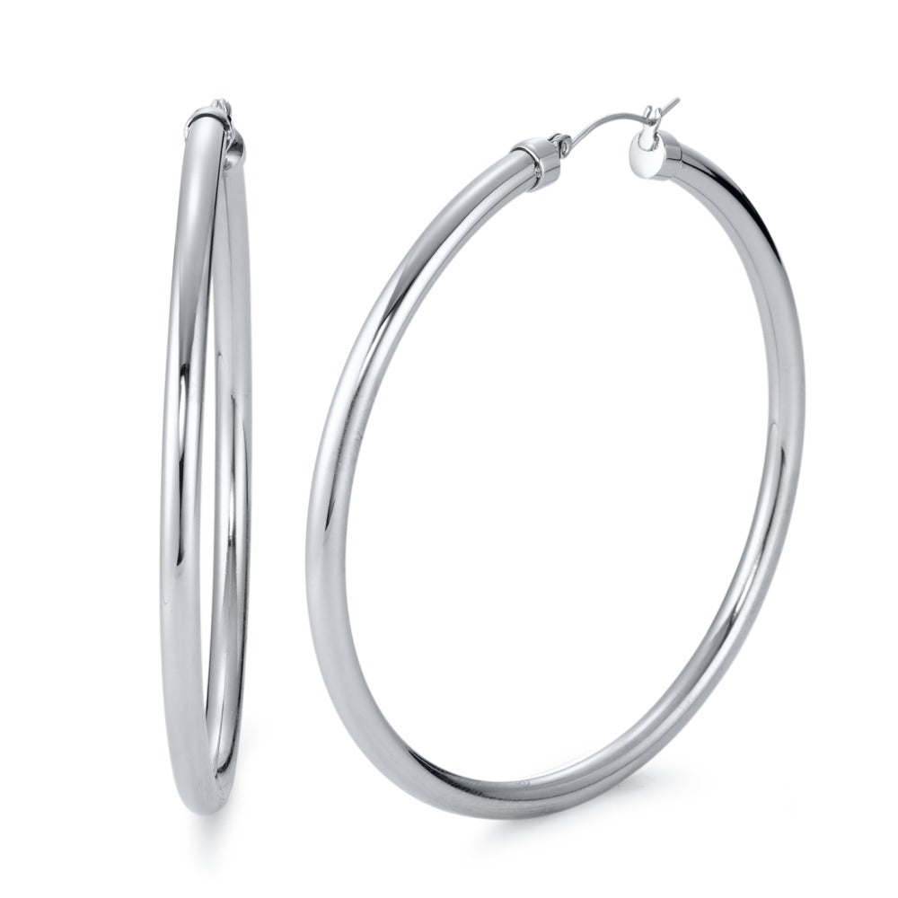 Schlichte und zeitlose Damen-Creolen aus hochwertigem Edelstahl. Die glänzende Oberfläche verleiht jedem Outfit einen eleganten Akzent. Leicht und angenehm zu tragen, sind diese Ohrringe das perfekte Accessoire für Alltag und besondere Anlässe. Nickel- und allergikerfreundlich.