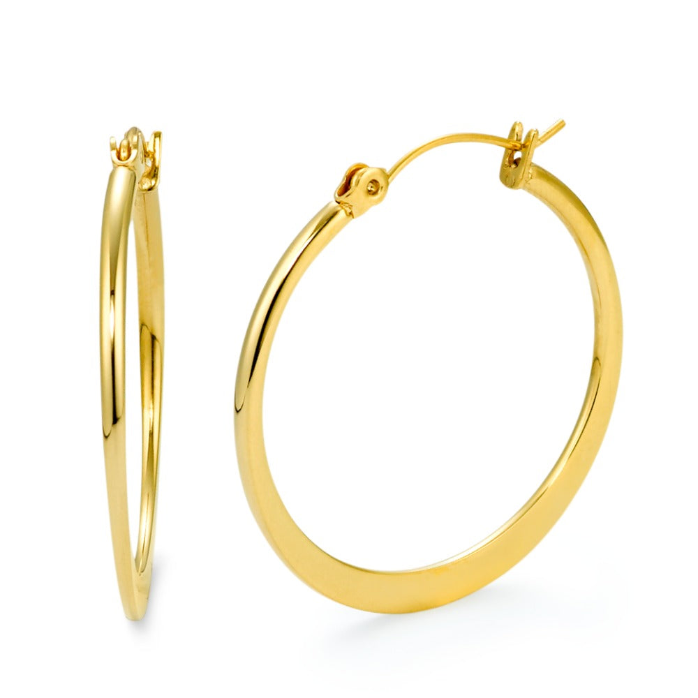 Diese eleganten Damen-Creolen aus hochwertigem Edelstahl bestechen durch ihr zeitloses Design und die goldfarbene Oberfläche. Sie sind leicht, langlebig und ideal für jeden Anlass. Perfekt, um Ihrem Outfit einen dezenten, aber stilvollen Glanz zu verleihen.