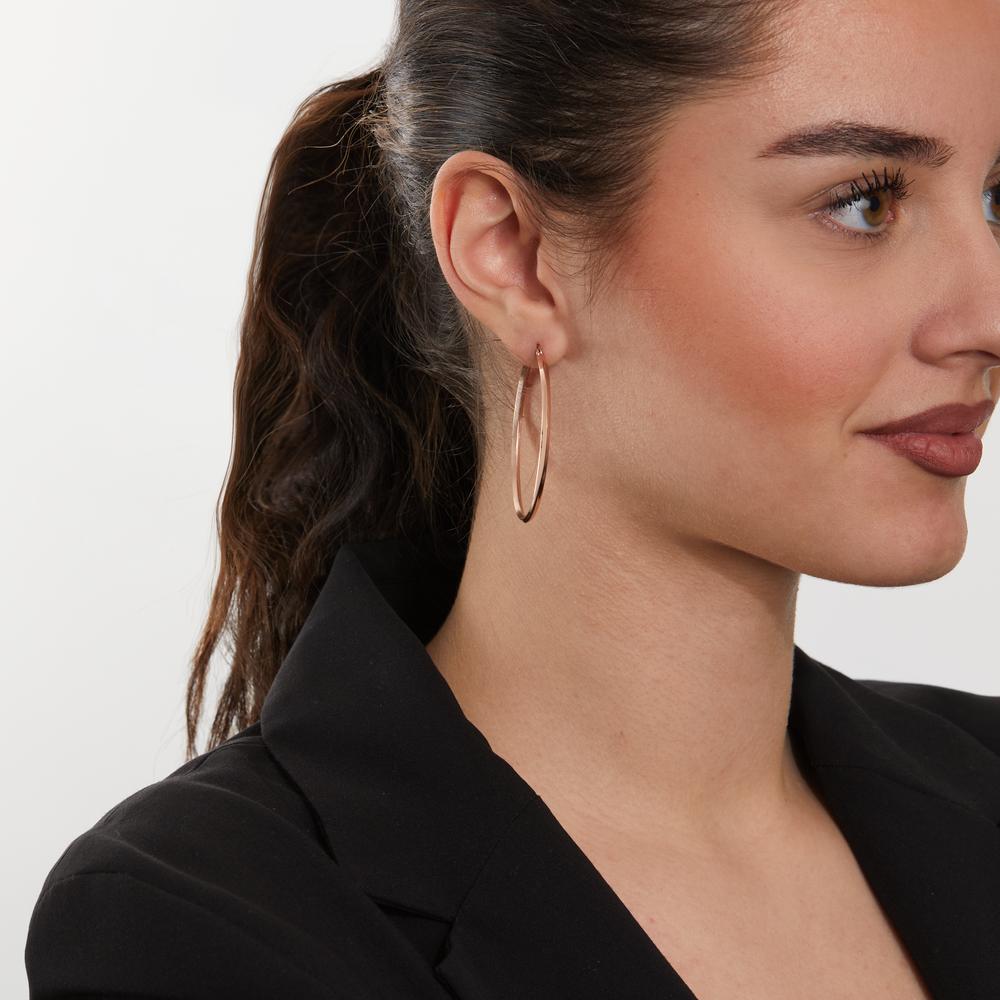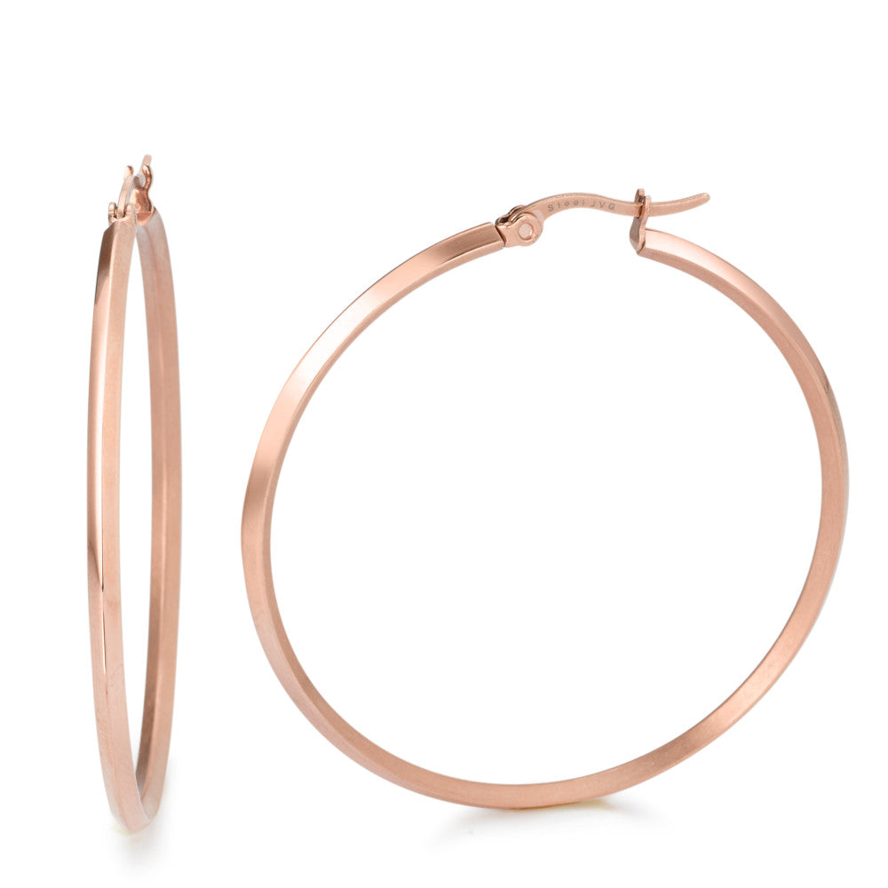 Elegante Damen-Creolen aus hochwertigem Edelstahl in trendiger Rosévergoldung. Die flache Form verleiht diesen Ohrschmuck eine zeitlose und stilvolle Optik, ideal für jeden Anlass. Allergikerfreundlich, robust und pflegeleicht – das perfekte Accessoire für moderne Frauen.
