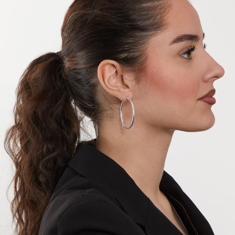 Elegante Damen-Creolen aus hochwertigem Silber. Schlichte, zeitlose Form mit glänzender Oberfläche – perfekt für jeden Anlass. Leicht und angenehm zu tragen, verleihen sie jedem Outfit eine stilvolle Note. Ein Must-have für Ihre Schmucksammlung!