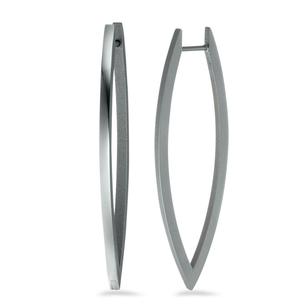 Elegante Damen-Creolen aus hochwertigem Titan, die durch ihr modernes, leicht gebogenes Design bestechen. Das robuste, zugleich leichtgewichtige Material sorgt für angenehmen Tragekomfort und hohe Hautverträglichkeit. Ein zeitloses Accessoire für jeden Anlass.